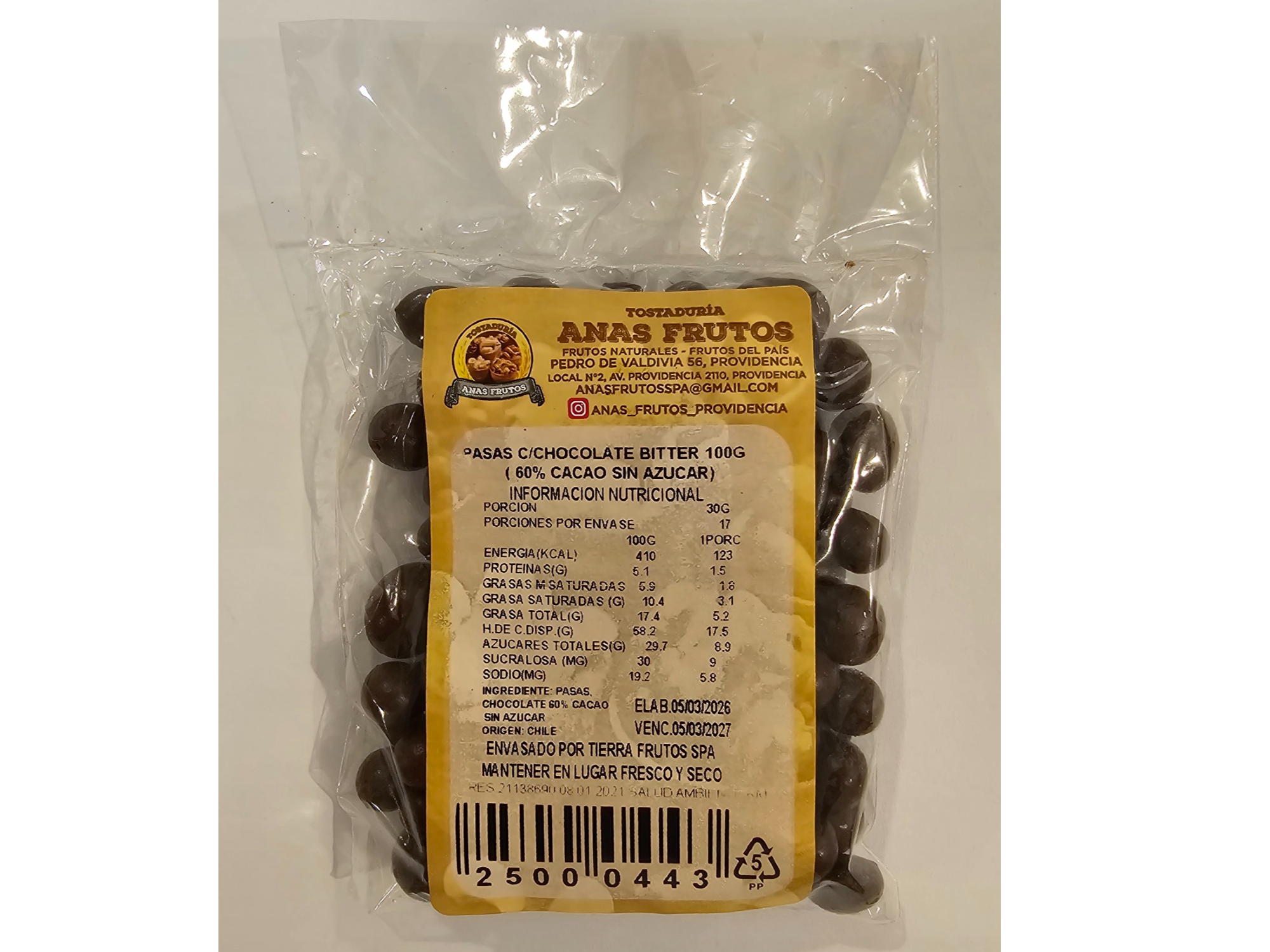 PASAS CON CHOCOLATE BITTER 100G Compartir por WhatsApp Copiar enlace 60% CACAO SIN AZUCAR$2.090 Observaciones 0 / 150